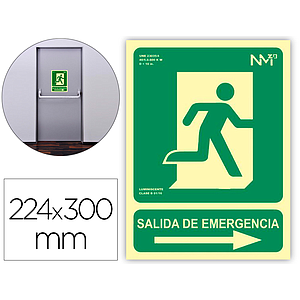 ARCHIVO 2000 - Pictograma salida de emergencia derecha pvc verde luminiscente 224x300 mm (Ref. 6170-04H VE)