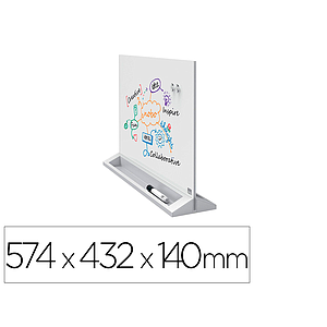 NOBO - Pizarra blanca cristal magnetica sobremesa doble caracon caballete imanes y rotulador 574x432x140 mm (Ref. 1905265)