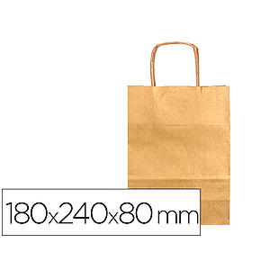 Q-CONNECT - BOLSA PAPEL KRAFT NATURAL LISO XS CON ASA RETORCIDA 180X240X80 MM (Ref.KF03737)