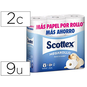 SCOTTEX - PAPEL HIGIENICO MEGARROLLO DOBLE LARGO PAQUETEDE 9 ROLLOS (Ref.17204)