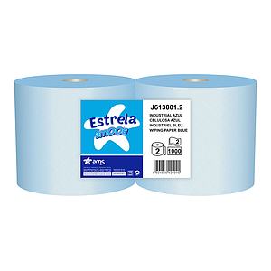 AMOOS - Papel Secamanos Industrial 2 bobinas azul 2capas 1.000 servicios 300 metros 100% fibra pura (Ref.J613001.2)