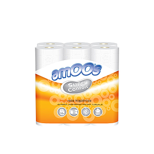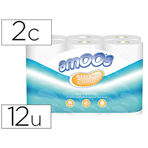 AMOOS - PAPEL HIGIENICO 2 CAPAS 100 MM DIAMETRO X 87 MM ALTO PAQUETE DE 12 ROLLOS (Ref.H621301.3)