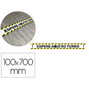ARCHIVO 2000 - Pictograma espere su turno mantega la distancia de seguridad vinilo adhesivo amarillo 100x700 mm (Ref. NOBA81100 AM)