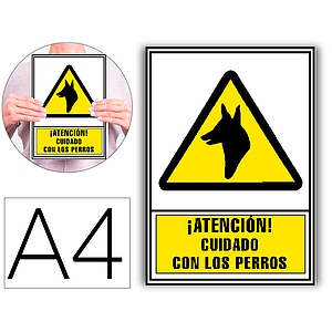 ARCHIVO 2000 - Pictograma atencion cuidado con los perros pvc amarillo luminiscente 210x297 mm (Ref. 6172-06 AM)