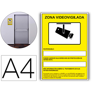 ARCHIVO 2000 - Pictograma camaras de vigilancia en grabacion las 24 horas pvc amarillo luminiscente 210x297 (Ref. 6172-09 AM)