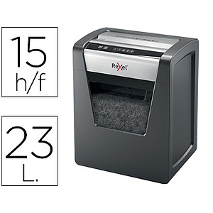 REXEL - DESTRUCTORA DE DOCUMENTOS MOMENTUM X415 CAPACIDAD DE CORTE 15 HOJAS DESTRUYE GRAPAS Y CLIPS PAPELERA 23 L (Ref.2104576EU)