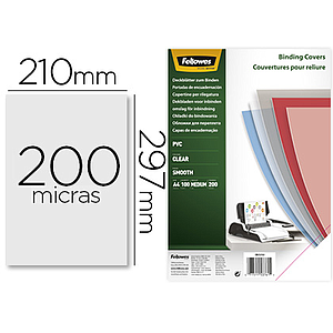FELLOWES - Tapa de encuadernacion din A4 pvc transparente cristal 200 micras pack de 100 unidades (Ref. 5376102)