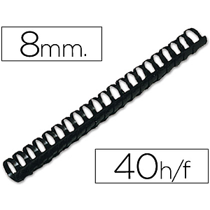 Q-CONNECT - CANUTILLO REDONDO 8 MM PLASTICO NEGRO CAPACIDAD 40 HOJAS CAJA DE 100 UNIDADES (Ref.KF24018)