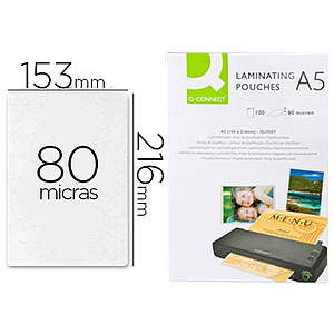 Q-CONNECT - BOLSA DE PLASTIFICAR 153 X 216 MM 80MC DIN A5 CAJA DE 100 UNIDADES (Ref.KF04106)