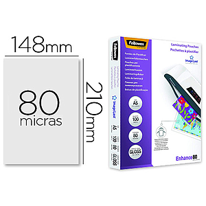 FELLOWES - Bolsa de plastificar brillo din a5 80 micras pack 100 unidades (Ref. 5306002)