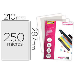 FELLOWES - Bolsa de plastificar brillo din A4 250 micras pack de 100 unidades (Ref. 5401802)