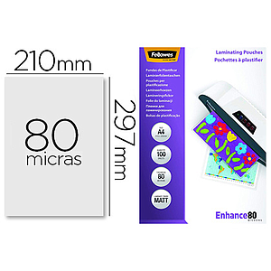 FELLOWES - Bolsa de plastificar mate din A4 80 micras pack 100 unidades (Ref. 5452103)