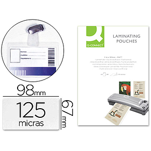 Q-CONNECT - BOLSA DE PLASTIFICAR 67 X 98 MM 125 MC CON CLIP PARA TARJETAS DE VISITA CAJA DE 25 UNIDADES (Ref.KF00302)