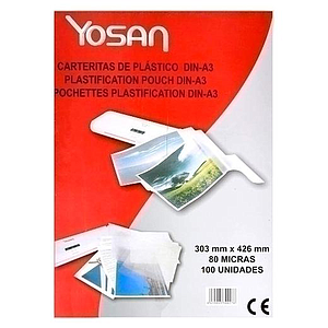 YOSAN - FUNDA PLASTIFICAR 303x426 (A3) 80µ ADHESIVA PAQUETE de 100 (Ref.0101CAAD3)