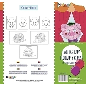 NIEFENVER - CARETA CARTULINA 300 gr. para RECORTAR Y DECORAR LOS 3 CERDITOS PACK de 7 (Ref.1400102)