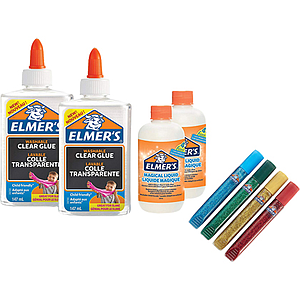 ELMER´S - ELMER'S - Kit fabricacion slime con 2 botes cola transparente + 2 botes liquido magico + 4 botes purpurina colores (Ref. 2050943)