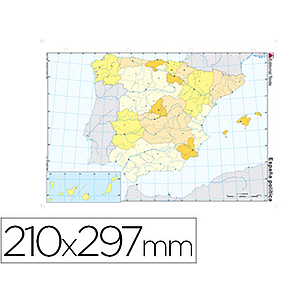 MAPA MUDO COLOR DIN A4 ESPAÑA -FISICO