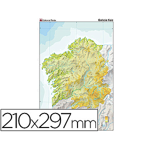 MAPA MUDO COLOR DIN A4 GALICIA FISICO (Ref.7230-8)