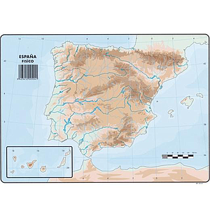SELVI - MAPA MUDO FÍSICO DE ESPAÑA A4 -50U- (Ref.504)