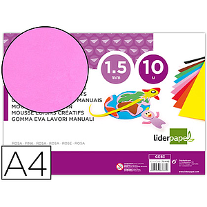 LIDERPAPEL - GOMA EVA DIN A4 60G/M2 ESPESOR 1,5MM ROSA PAQUETE DE 10 HOJAS (Ref.GE83)