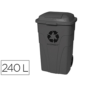 Q-CONNECT - Papelera contenedor plastico con tapadera 240l color gris 1040x610x610 mm con ruedas (Ref. KF11291)