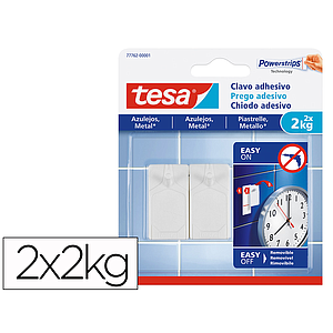 TESA - Clavo autoadhesivo sujecion hasta 2 kg uso azulejos removible blister de 2 unidades (Ref. 77762-00001-00)