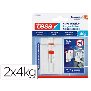 TESA - Clavo autoadhesivo sujecion hasta 4 kg uso azulejos removible blister de 2 unidades (Ref. 77767-00001-00)