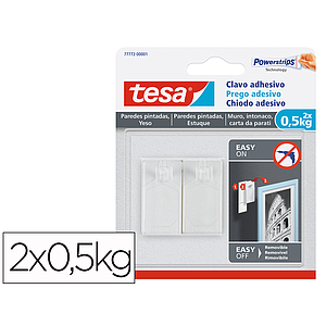 TESA - Clavo autoadhesivo sujecion hasta 0,5 kg uso paredes pintadas removible blister de 2 unidades (Ref. 77772-00001-00)
