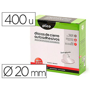 PLICO - Disco de cierre velcro autoadhesivo 20 mm diametro color blanco caja de 400 unidades (Ref. 13334)
