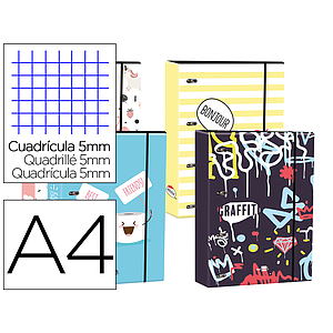 LIDERPAPEL - Carpeta din A4 forrada con recambio 120 hojas 80 gr 5 mm 4 an. redondas 40 mm cierre goma (Ref. 63807)