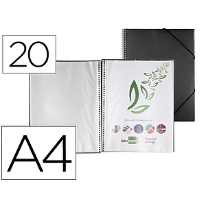 LIDERPAPEL - CARPETA ESCAPARATE CON ESPIRAL 20 FUNDAS POLIPROPILENO DIN A4 NEGRO (Ref.EC30)