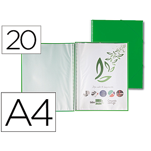 LIDERPAPEL - CARPETA ESCAPARATE CON ESPIRAL 20 FUNDAS POLIPROPILENO DIN A4 VERDE (Ref.EC07)