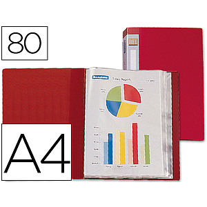 LIDERPAPEL - CARPETA ESCAPARATE 31760 80 FUNDAS POLIPROPILENO DIN A4 ROJA LOMO PERSONALIZABLE (Ref.CJ54)