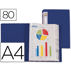 LIDERPAPEL - CARPETA ESCAPARATE 31762 80 FUNDAS POLIPROPILENO DIN A4 AZUL LOMO PERSONALIZABLE (Ref.CJ52)