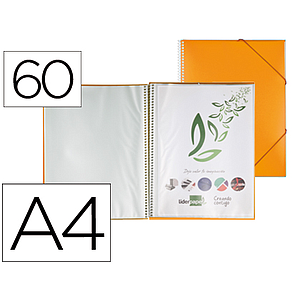 LIDERPAPEL - CARPETA ESCAPARATE CON ESPIRAL 60 FUNDAS POLIPROPILENO DIN A4 NARANJA (Ref.EC24)