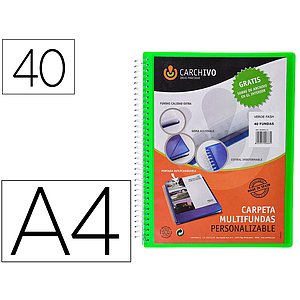 LIDERPAPEL - Carpeta A4 con 40 fundas intercambiables 5 sep sobre y gomilla portada y lomo personalizable verde (Ref. JC36)