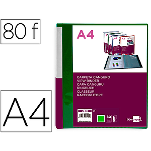 LIDERPAPEL - Carpeta 80 fundas canguro pp din A4 verde translucido portada y lomo personalizable (Ref. JC31)