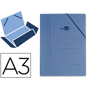LIDERPAPEL - CARPETA GOMAS A3 3 SOLAPAS Cartón PRESPAN AZUL (Ref.CG17)