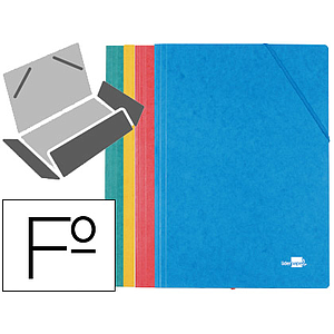 LIDERPAPEL - CARPETA GOMAS FOLIO 3 SOLAPAS Cartón SIMIL PRESPAN COLORES SURTIDOS PACK 4 (Ref.CG37)