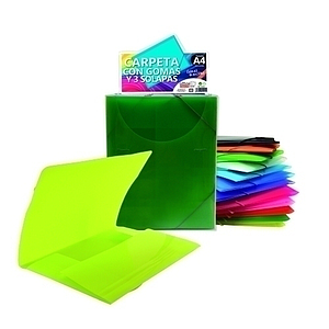 CARCHIVO - CARPETA de GOMAS y SOLAPAS PP TRANS. Fº FLUOR 6 colores surtidos (Ref.2033KFE)