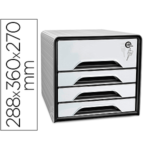 CEP - Fichero cajones de sobremesa smoove secure con cerradura 4 cajones color blanco/negro 288x360x270 mm (Ref. 1073110511)