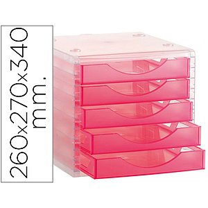 Q-CONNECT - Fichero cajones de sobremesa 260x270x340 mm apilables 5 cajones rosa translucido (Ref. KF18413)