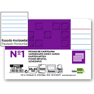 LIDERPAPEL - FICHA RAYADA Nº1 65 X 95MM PAQUETE DE 100 180G (Ref.FR01)