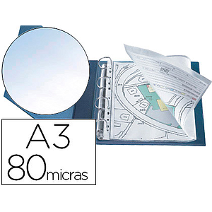 Q-CONNECT - FUNDA MULTITALADRO DIN A3 APAISADA 80 MICRAS CRISTAL CON APERTURA SUPERIOR - BOLSA DE 10 (Ref.KF00715)
