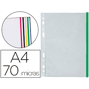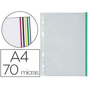 Q-CONNECT - FUNDA MULTITALADRO DIN A4 70 MC PP CRISTAL CON BORDE VERDE BOLSA DE 10 UDS (Ref.KF18052)