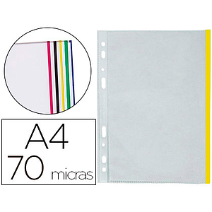 Q-CONNECT - FUNDA MULTITALADRO DIN A4 70 MC PP CRISTAL CON BORDE AMARILLO BOLSA DE 10 UDS (Ref.KF18053)