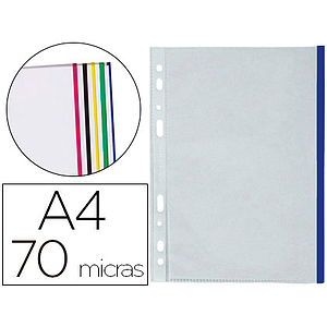 Q-CONNECT - FUNDA MULTITALADRO DIN A4 70 MC PP CRISTAL CON BORDE AZUL BOLSA DE 10 UDS (Ref.KF18054)