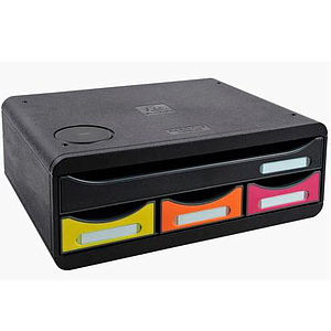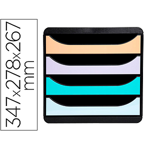 EXACOMPTA - Fichero de cajones sobremesa big-box aquarel negro 4 cajones colores pastel glossy (Ref. 3104296D)