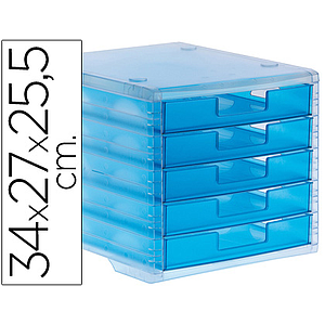 Q-CONNECT - FICHERO CAJONES DE SOBREMESA 340X270X255 MM APILABLES 5 CAJONES AZUL MAR TRANSLUCIDO (Ref.KF18421)
