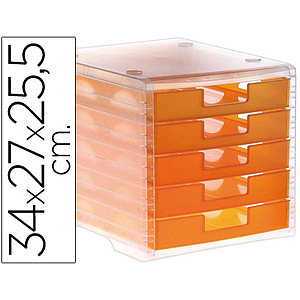 Q-CONNECT - FICHERO CAJONES DE SOBREMESA 340X270X255 MM APILABLES 5 CAJONES NARANJA MANDARINA TRANSLUCIDO (Ref.KF18422)